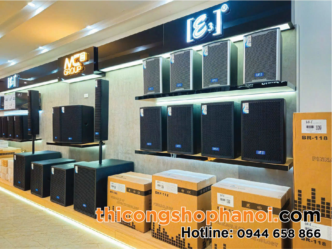 Home / Shop - showroom đã thi công / Thiết kế thi công Showroom Trưng bày Loa và Thiết bị âm thanh E3