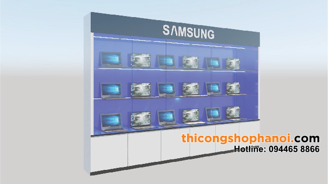 Với lợi thế thiết kế và thi công sản xuất nhanh, công trình của quý khách sẽ nhanh chóng được đưa vào vận hành, giúp tối ưu thời gian cho quý khách Thiết kế shop máy tính ấn tượng, lôi cuốn kết hợp phối màu cũng như sử dụng chất liệu nội thất shop máy tính, showroom máy tính phải có tính thẩm mỹ cao, nhẹ nhàng, tủ kệ trưng bày sản phẩm sắp xếp hài hòa thoáng đãng phù hợp với việc phân loại sản phẩm 1 cách khoa học nhất. Thiết kế nội thất showroom máy tính là công việc khá khó khăn đối với hầu hết mọi người là vì khả năng thiết kế nên 1 showroom đẹp và chuyên nghiệp. Cho dù các bạn tự thiết kế, trang trí hay thuê công ty thiết kế nội thất shop máy tính thì bạn vẫn nên tham khảo về các kiểu trưng bày và những mẫu thiết kế cửa hàng, shop, showroom đẹp về máy tính để áp dụng cho showroom của bạn.