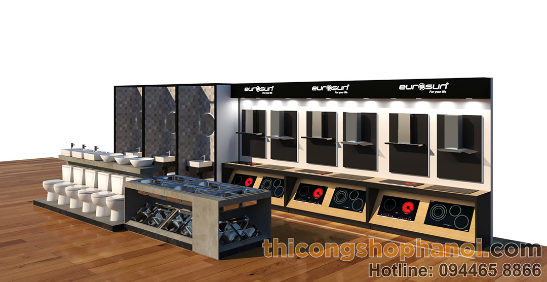 đổi lại tên: Thiết kế và thi công Tủ kệ trưng bày TBVS Sen vòi, Bếp từ cho đại lý 2025-03-25 Trường An