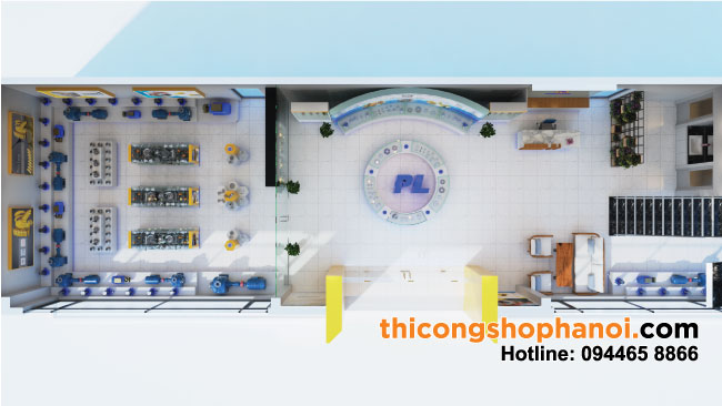 Home / Thiết kế shop / Thiết kế và thi công Showroom trưng bày Máy móc, phụ tùng Phúc Long