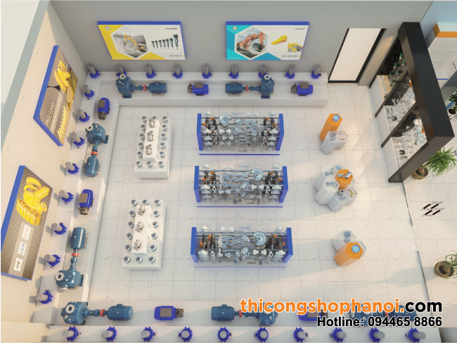 Thiết kế và thi công Showroom trưng bày Máy móc, phụ tùng Phúc Long