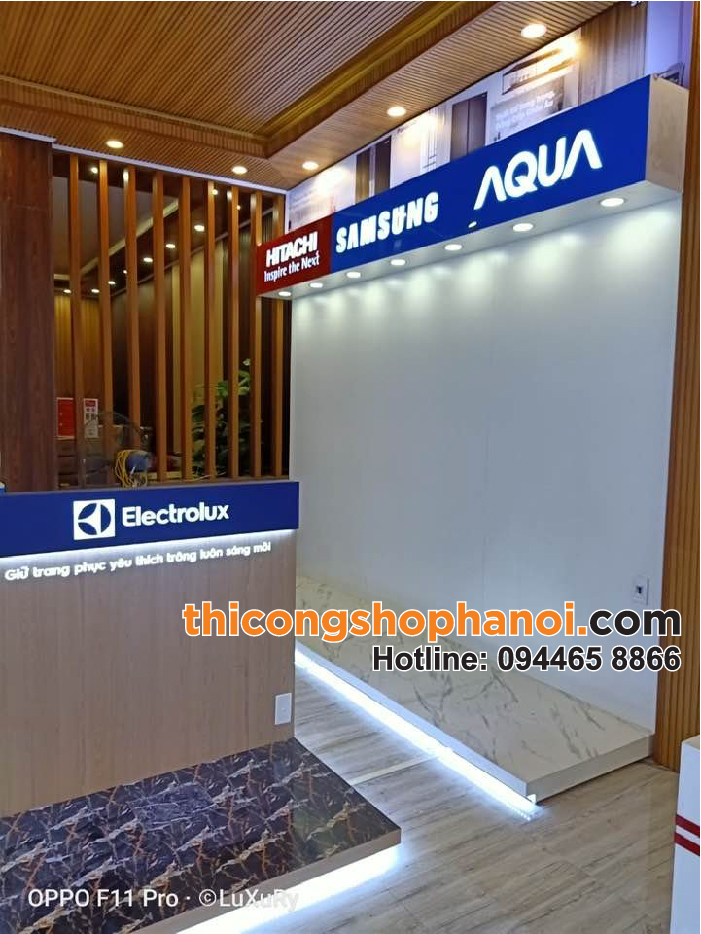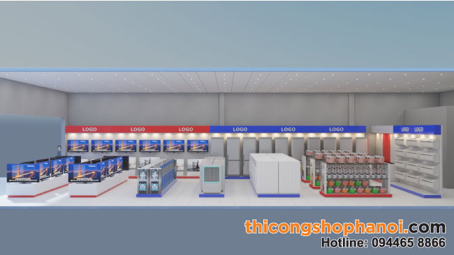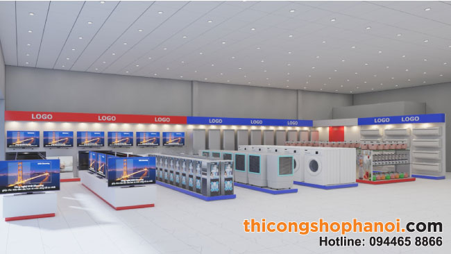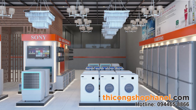 Trong nhiều đơn vị thiết kế showroom kinh doanh hiện nay, thicongshophanoi.com là đơn vị thiết kế và thi công bố trí nội thất cho shop chuyên nghiệp và uy tín. Chúng tôi có hơn 15 năm kinh nghiệm trong lĩnh vực thiết kế thi công nội thất cửa hàng kinh doanh với nhiều sản phẩm khác nhau. Chúng tôi có một đội ngũ thiết kế viên sáng tạo, xưởng gỗ rộng hơn 2.000m2 và đội ngũ nhân viên, kỹ thuật viên lành nghề luôn luôn sẵn sàng đồng hành với bạn làm đẹp hình thức showroom điện máy của mình.