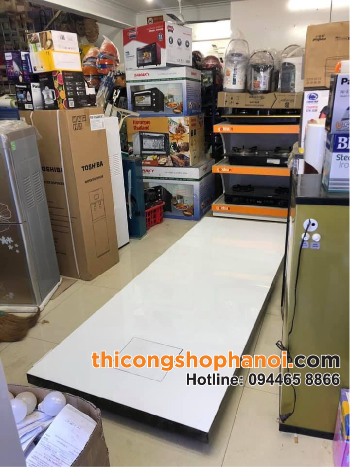 Các loại quầy trưng bày được thiết kế đơn giản và ấn tượng, hợp với xu hướng chung. Được chia ra thành nhiều ngăn có khoảng cách trung bình được thiết kế thích hợp để trưng bày các loại hàng tiện dụng hơn. Tối giản quá, lâu dần sẽ dẫn đến nhàm chán nên showroom cũng thường đổi mới cách thức trang trí nhằm shop luôn thu hút khách. dien-may-hong-khanh-quang-oai9